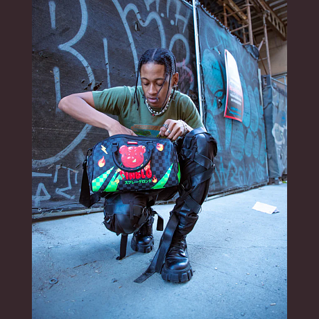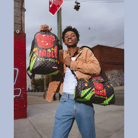 Сумка Sprayground с принтом Diablo – это идеальный выбор для стильных девушек! Изготовленная из 100% поливинилхлорида и подкладки из полиэстера, она украшена ярким принтом с красным медведем и огненными элементами. Сочетание черного и зеленого в клетку делает эту сумку не только стильной, но и удобной для переноски вещей. На фотографиях видна удобная ручка и прочная застежка. Качество от бренда из США и внимание к деталям делают эту сумку отличным выбором для вашего образа!
