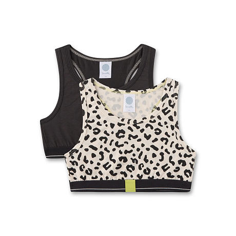 Бюстье Sanetta – это идеальный выбор для девочек! Изготовленные из 95% хлопка и 5% эластана, они украшены очаровательным леопардовым принтом. Бежевый цвет с черными пятнами создает модный и элегантный образ. На фотографиях видна аккуратная черная окантовка по краю и мягкая текстура ткани. Качество от бренда Sanetta и внимание к деталям делают эту модель отличным выбором для вашего ребенка!