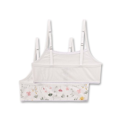 Бюстье Sanetta – это идеальный выбор для девочек! Комплект состоит из двух бюстгальтеров, украшенных нежным цветочным принтом с розовыми и белыми цветами на молочном фоне. Бюстье изготовлено из высококачественного материала на основе хлопка и модала, что обеспечивает мягкость и комфорт для нежной кожи. На фотографиях видна аккуратная белая окантовка по краю и эластичные швы, которые обеспечивают идеальную посадку. Качество от бренда Sanetta и внимание к деталям делают эту модель отличным выбором для вашего ребенка!