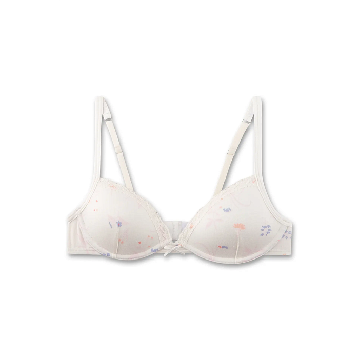 Бюстгальтер Sanetta молочного цвета с очаровательным цветочным принтом идеально подойдет для вашего маленькой принцессы. Изготовлен из высококачественного материала: 33% хлопок, 33% модал, 15% полиамид, 12% эластан и 7% полиэстер. Благодаря такому составу бюстгальтер обеспечивает мягкость и комфорт для кожи. Цветочный принт придает модели легкость и нежность, а эластичная резинка на боку обеспечивает идеальную посадку. Бюстгальтер Sanetta - отличный выбор для вашего ребенка!