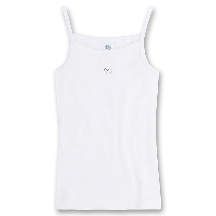 Майка для девочек Sanetta – это идеальный выбор для маленьких модниц! Изготовленная из 100% хлопка, она украшена очаровательным принтом сердца. Белый цвет и простой дизайн создают нежное и элегантное настроение. На фотографии видна аккуратная отделка по краю и мягкость ткани. Качество от немецкого бренда Sanetta и внимание к деталям делают эту майку отличным выбором для вашего ребенка!