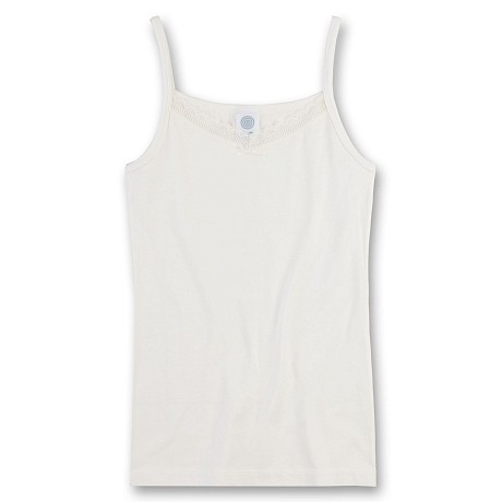Молочная майка Sanetta – идеальный вариант для девочек! Изготовлена из 46% хлопка, 46% модала и 8% эластана, она обеспечивает отличную посадку и комфорт. Модная кружевная отделка по краю горловины придает модели нежный и элегантный вид. На фотографии видна аккуратная кружевная деталь по краю горловины и мягкая текстура ткани. Качество от немецкого бренда Sanetta делает эту майку отличным выбором для вашего ребенка!