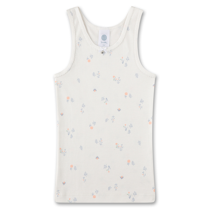 Молочная майка Sanetta – это идеальный выбор для девочек! Изготовленная из 100% хлопка, она украшена нежным цветочным принтом в виде маленьких розовых и голубых цветочков на молочном фоне. Мягкая и приятная на ощупь ткань создает комфорт и уют для вашего ребенка. На фото видна аккуратная белая окантовка по краю и удобная круглая горловина. Качество от бренда из Германии и внимание к деталям делают эту майку отличным выбором для вашего девочки!