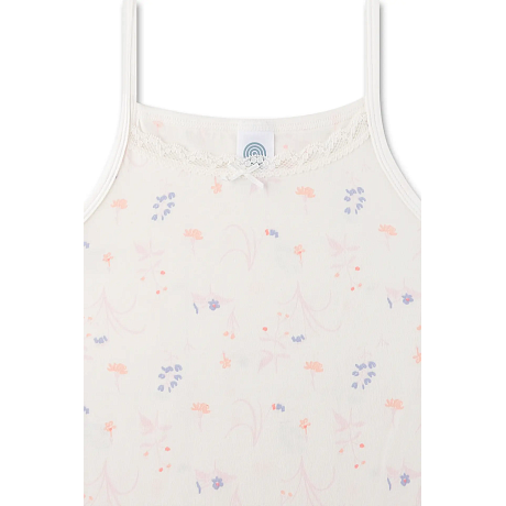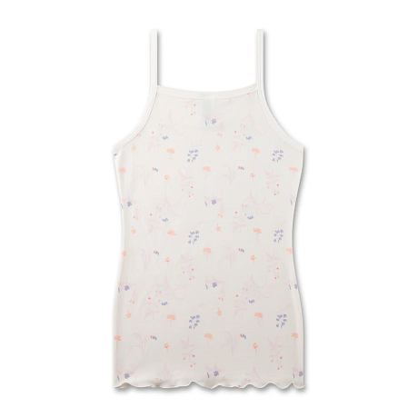 Молочная майка Sanetta с нежным цветочным принтом – идеальный выбор для вашего ребенка! Изготовлена из 46% хлопка, 46% модала и 8% эластана, что делает её мягкой, эластичной и идеально подходящей для нежной кожи. Нежные цветы и листья в нежных оттенках создают нежное и романтичное настроение. На фото видна аккуратная кружевная отделка по краю и удобная посадка. Качество от бренда Sanetta и внимание к деталям делают эту майку отличным выбором для вашего ребенка!
