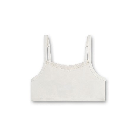 Бюстье Sanetta – идеальный выбор для девочек от 10 до 14 лет! Изготовленное из 37% хлопка, 37% модала, 14% полиамида и 12% эластана, оно обеспечивает мягкость и комфорт. Бюстье молочного цвета с эластичными бретелями и кружевом на груди создает элегантный и удобный образ. На фотографии видна аккуратная кружевная отделка по краю и мягкая текстура ткани. Качество от бренда Sanetta и внимание к деталям делают эту модель отличным выбором для вашего ребенка!
