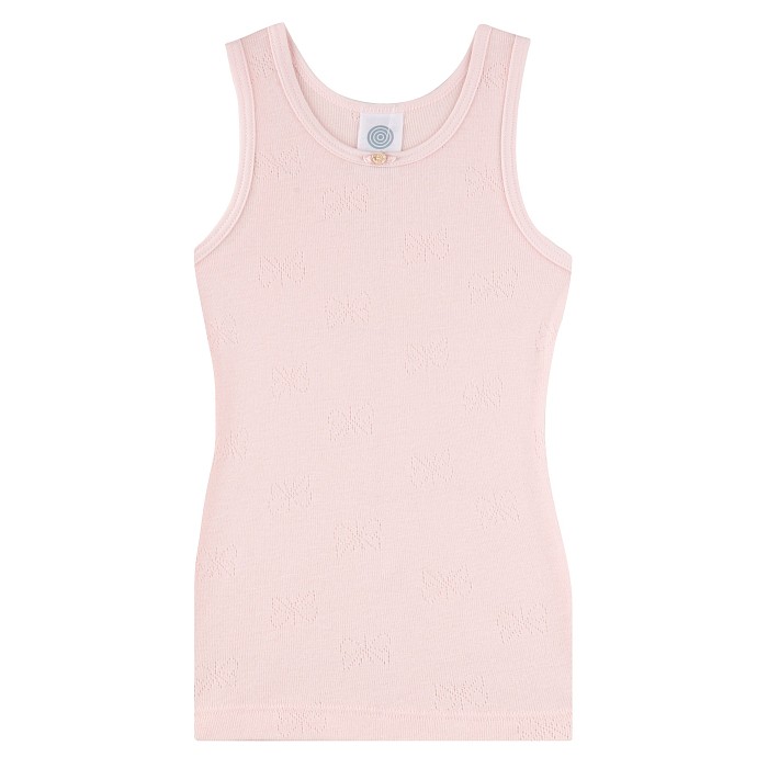 Майка для девочек Sanetta – это идеальный выбор для вашего ребенка! Изготовлена из 50% хлопка и 50% модала, она украшена очаровательными сердечками. Нежная розовая основа с белыми сердечками создает мягкое и в то же время стильное настроение. На фотографии видна аккуратная белая окантовка по краю и мягкая текстура ткани. Качество от бренда Sanetta и внимание к деталям делают эту майку отличным выбором для вашего ребенка!