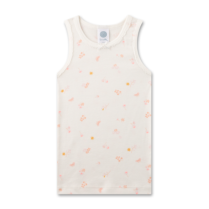 Молочная майка Sanetta с нежным цветочным принтом – идеальный выбор для вашего ребенка! Изготовлена из 100% хлопка, она украшена мелкими розовыми и желтыми цветочками на светло-молочном фоне. Мягкая и приятная на ощупь, эта майка создает комфорт и уют для вашего девочки. На фотографиях видна аккуратная белая кружевная окантовка по краю и мягкая текстура ткани. Качество от бренда из Германии и внимание к деталям делают эту майку отличным выбором для вашего ребенка!