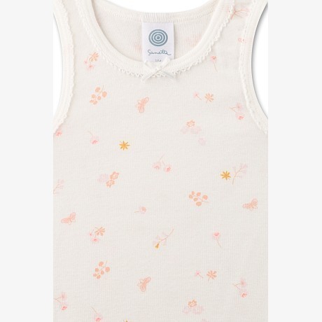 Молочная майка Sanetta с нежным цветочным принтом – идеальный выбор для вашего ребенка! Изготовлена из 100% хлопка, она украшена мелкими розовыми и желтыми цветочками на светло-молочном фоне. Мягкая и приятная на ощупь, эта майка создает комфорт и уют для вашего девочки. На фотографиях видна аккуратная белая кружевная окантовка по краю и мягкая текстура ткани. Качество от бренда из Германии и внимание к деталям делают эту майку отличным выбором для вашего ребенка!