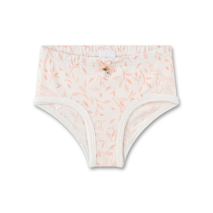 Трусы для девочки Sanetta молочные с принтом птиц и листьев