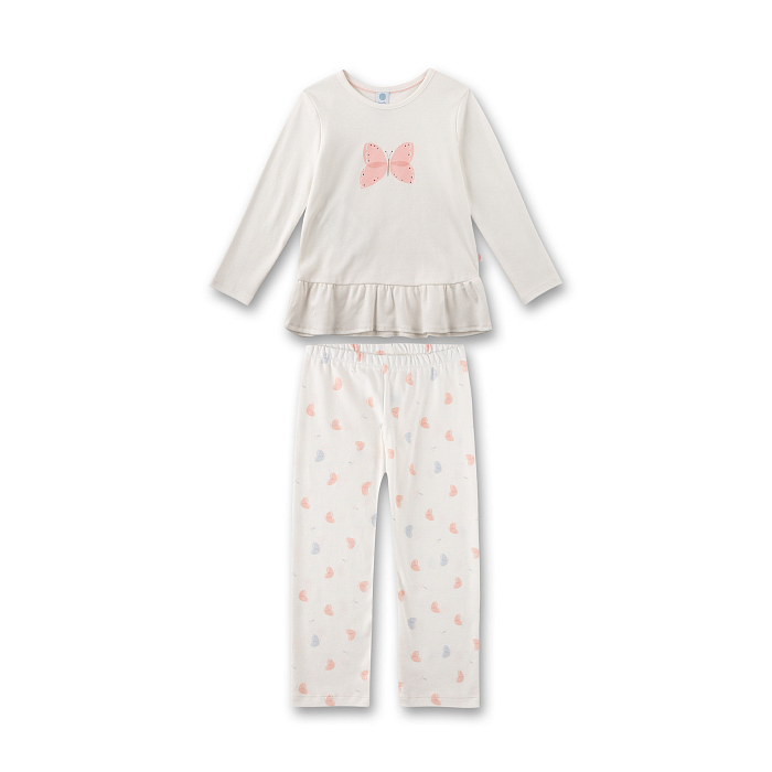 Пижама Sanetta – это идеальный выбор для девочек! Изготовленная из 100% натурального хлопка, она украшена очаровательными розовыми бабочками на белом фоне. Бежевый цвет создает нежное и уютное настроение, а бабочки придают модели легкость и изящность. На фотографиях видна аккуратная розовая контрастная окантовка по краю и мягкая текстура ткани. Качество от бренда Sanetta и внимание к деталям делают эту пижаму отличным выбором для вашего ребенка!