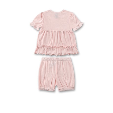 Пижама для девочек Sanetta – это идеальный выбор для маленьких принцесс! Изготовленная из 50% хлопка и 50% модала, она идеально подходит для сна и отдыха. Розовый цвет создает нежное и романтичное настроение. Пижама состоит из короткого рукава и шорт, украшенных нежными рюшами и вышивкой. Качество от бренда из Германии и удобная посадка делают эту пижаму отличным выбором для вашего ребенка!