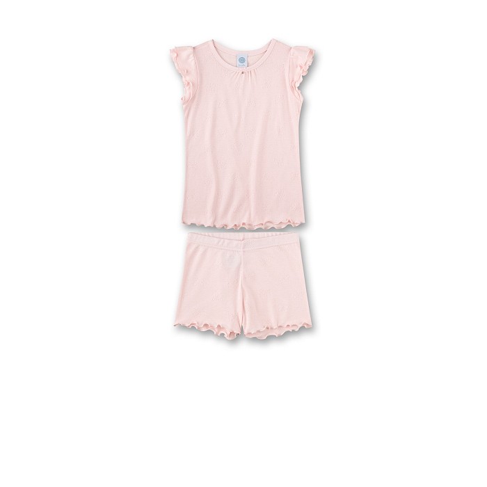 Пижама Sanetta – это идеальный выбор для маленьких принцесс! Изготовленная из 50% хлопка и 50% модала, она создает идеальную комбинацию мягкости и эластичности. Нежная розовая пижама с воланами на рукавах и шортах обеспечивает комфорт и уют для вашего ребенка. На фотографиях видны аккуратные воланы на рукавах и шортах, а также нежная текстура ткани. Качество от немецкого бренда Sanetta и внимание к деталям делают эту пижаму отличным выбором для вашего малыша!