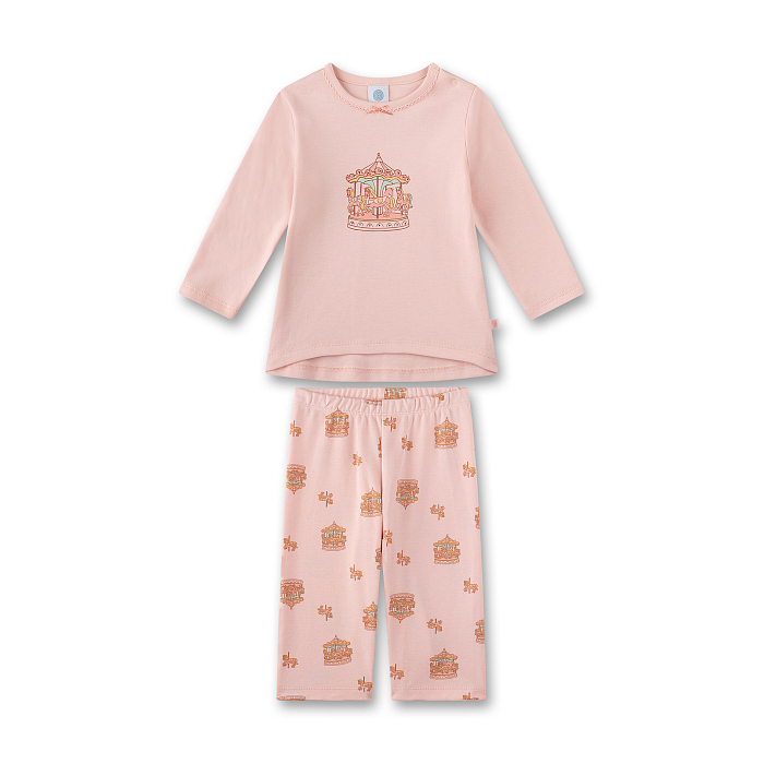 Пижама Sanetta – это идеальный выбор для маленьких принцесс! Изготовленная из 100% хлопка, она украшена очаровательными розовыми каруселями и цветочками на светло-розовом фоне. Нежная текстура ткани и удобная посадка создают идеальную атмосферу уюта и уюта. На фотографиях видна аккуратная розовая окантовка по краю и мягкая текстура ткани. Качество от бренда из Германии и внимание к деталям делают эту пижаму отличным выбором для вашего малыша!
