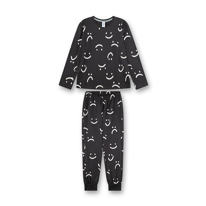 Темно-серая пижама Sanetta – идеальный выбор для девочек! Изготовлена из 100% хлопка, она украшена мило-смешными печатями с улыбками и слезинками. Пижама идеально подойдет для девочек от 10 до 16 лет. Быстрая доставка СДЭК по всей России.