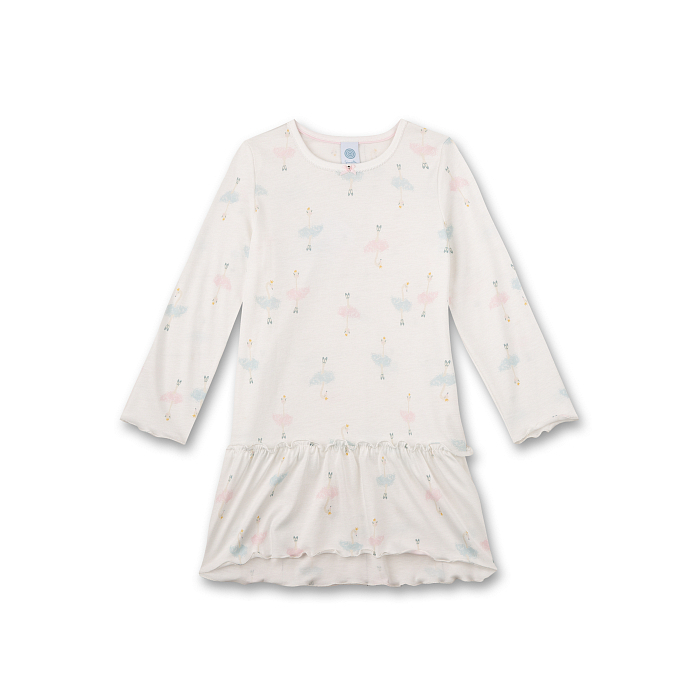 Сорочка ночная Sanetta – это идеальный выбор для маленьких принцесс! Изготовленная из 50% хлопка и 50% модала, она украшена очаровательными балеринами в розовых и голубых платьях на молочном фоне. Нежная текстура ткани и рюши по низу создают комфорт и уют. На фотографиях видны аккуратные рюши по краю и мягкость ткани. Качество от бренда Sanetta и внимание к деталям делают эту сорочку отличным выбором для вашего ребенка!