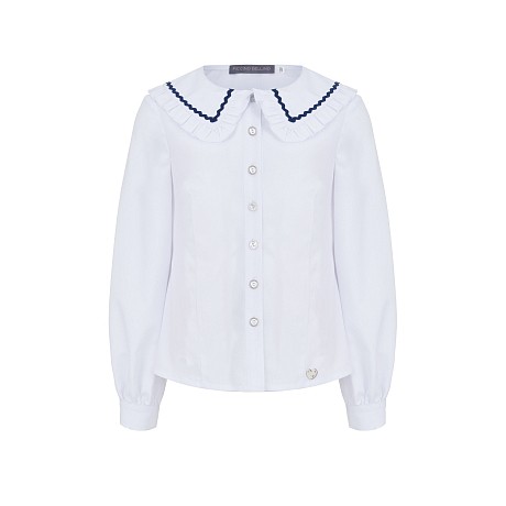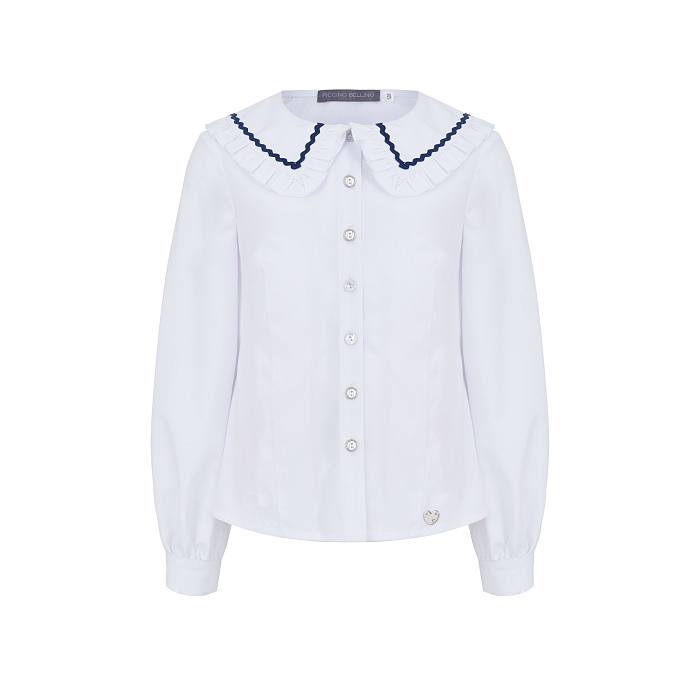 Блузка для девочек Piccino Bellino с синей тесьмой и белым цветом – идеальный выбор для вашего ребенка! Изготовлена из 65% полиэстера и 35% вискозы, что делает её гипоаллергенной и приятной на ощупь. Белый цвет блузки с синей тесьмой создает элегантный и модный образ. На фото видна аккуратная белая воротничная планка с синей тесьмой, пуговицы и рукава с эластичной резинкой. Блузка подходит для девочек от 9 до 12 лет, идеально сидит и выглядит стильно. Качество от бренда из России и внимание к деталям делают эту блузку отличным выбором для вашего ребенка!