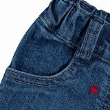 • 🎨 Дизайн: темно-синий джинс, красные вышитые точки