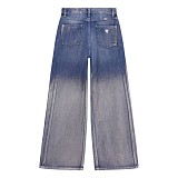 - 🎨 Дизайн: широкие штанины, эффект омбре (двухцветный синий), классические карманы