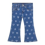 Синие джинсы-клеш Guess с принтом сердечек и звезд для девочек (2-6 лет)