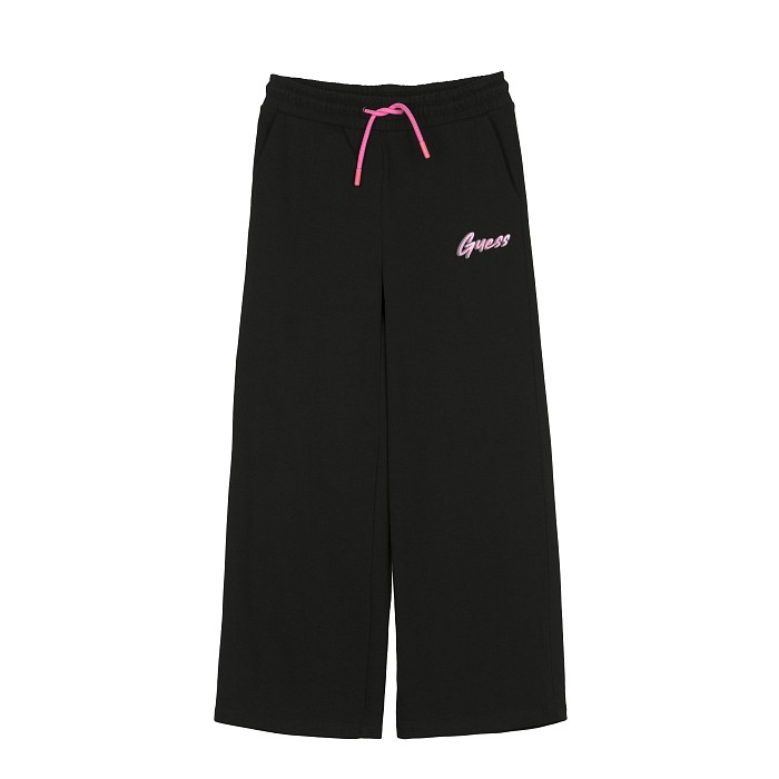 Черные брюки Guess – идеальный выбор для юных модниц! Изготовлены из 100% хлопка, они украшены розовым логотипом Guess и розовой резинкой. Нежная черная основа с ярким розовым акцентом создает стильный и удобный образ. Бренд Guess – премиум качество от США, которое обеспечивает комфорт и долговечность. Быстрая доставка СДЭК по всей России.