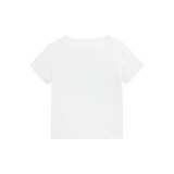 Белая футболка Guess – это воплощение свежести и уюта для вашей дочки. Мягкий состав из 95% хлопка и 5% эластана обеспечивает идеальную посадку по фигуре, свободу движений и комфорт в течение всего дня. На груди расположен стильный черно-белый графический принт с очаровательным сидящим зайчиком и фирменной надписью бренда. Классический крой с круглым вырезом горловины и короткими рукавами легко сочетается с джинсами, юбками или шортами.