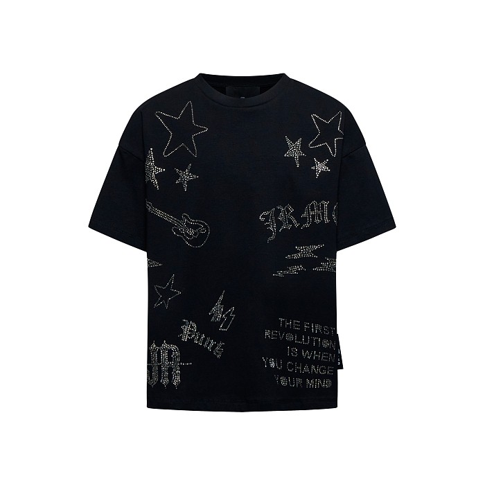 Черная футболка для девочек John Richmond с принтом звезд и надписями