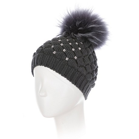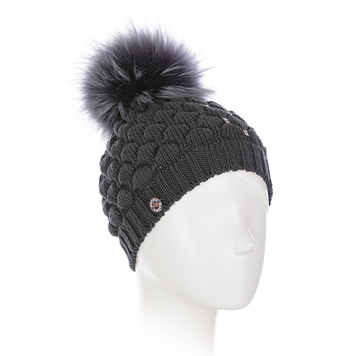 Шапка для девочек Joli Bebe темно-серого цвета с меховым помпоном