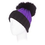 Шапка для девочки Joli Bebe черная с фиолетовым и меховым помпоном
