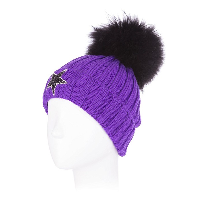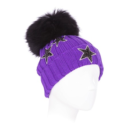 Фиолетовая шапка Joli Bebe с меховым помпоном и звездами