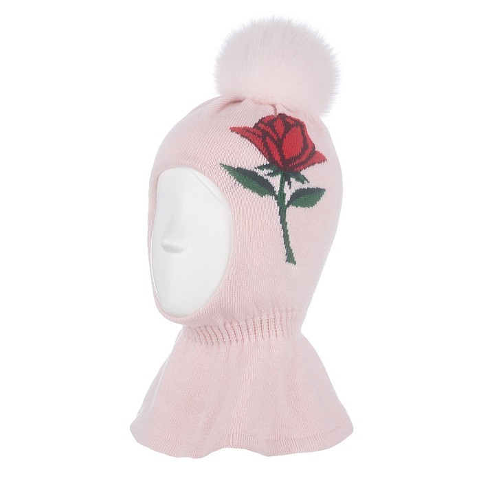 - 🎨 Дизайн: вязаная роза, меховой помпон