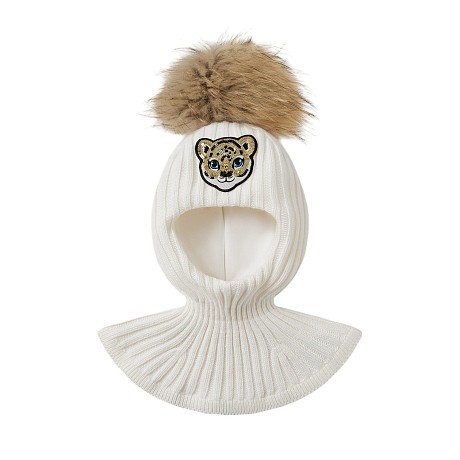 Шлем для девочки Chobi – это идеальный выбор для холодной погоды! Изготовленный из 45% шерсти, 25% вискозы, 25% полиамида и 5% кашемира, он украшен очаровательным принтом тигра с блестящими глазами и мехом енота на верхушке. Бежевый и белый цвета создают стильный и комфортный образ. Подкладка из 100% хлопка и эластана обеспечивает мягкость и удобство. Качество от бренда из России и внимание к деталям делают этот шлем отличным выбором для вашего ребенка!