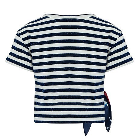 - 🎨 Дизайн: темно-синие полосы, завязка на талии блузки, красные шорты, эластичная резинка