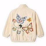 Флисовая куртка в нежном молочном цвете станет идеальным выбором для прохладной погоды. Изготовлена из 100% переработанного полиэстера, что подчеркивает заботу о природе и комфорте ребенка. Яркий цветочный принт на груди добавляет образу игривости, а удобные карманы и манжеты с резинкой обеспечивают идеальную посадку. Премиальное качество из Дании для вашей маленькой модницы!