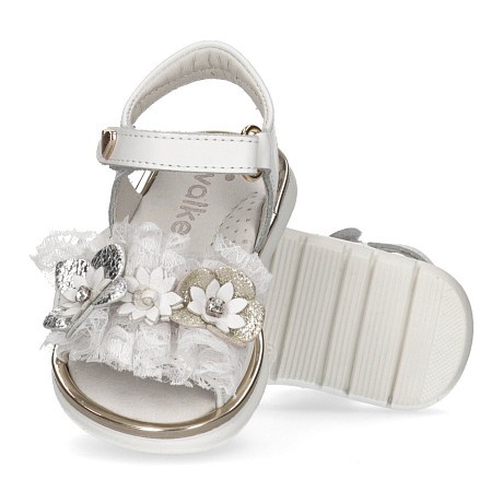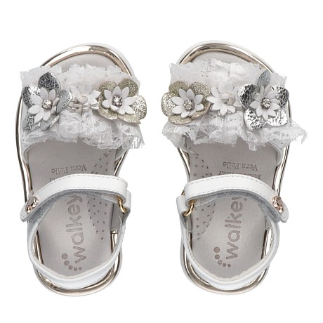 Белые сандалии для девочки Walkey с цветочным принтом и лентами