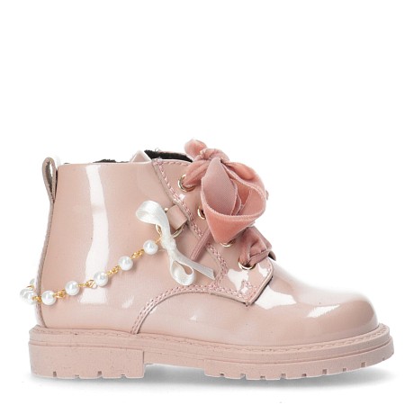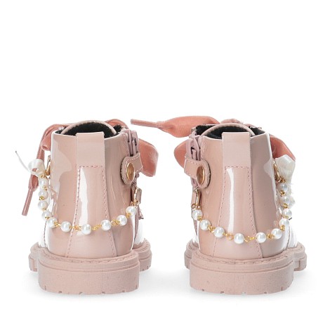 Ботинки для девочки бледно-розовые с бантами и бусинами