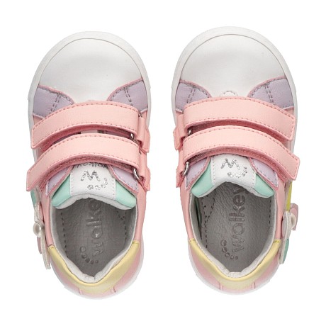 Кроссовки для девочек Walkey – это идеальный выбор для маленьких модниц! Изготовленные из 85% полиуретана и 15% полиэстера с подкладкой из 100% кожи и термопластичной резины, они украшены ярким цветочным принтом и двойной липучкой. Розовый цвет подчеркивает нежность и легкость, а цветочные аппликации придают модели особую выразительность. На фотографиях видна аккуратная липучка по бокам и мягкая текстура ткани. Качество от итальянского бренда Walkey и внимание к деталям делают эти кроссовки отличным выбором для вашего ребенка!