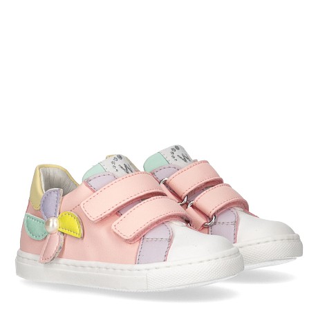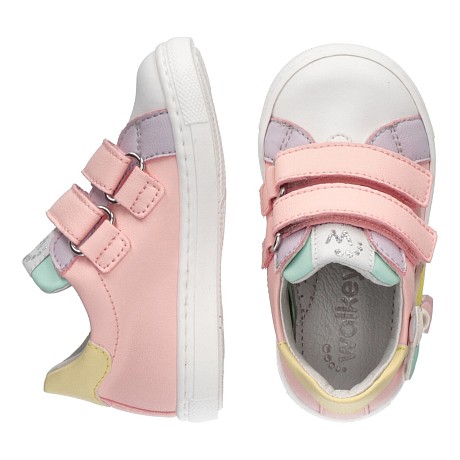 Розовые кроссовки для девочек с цветочным принтом и двойной липучкой