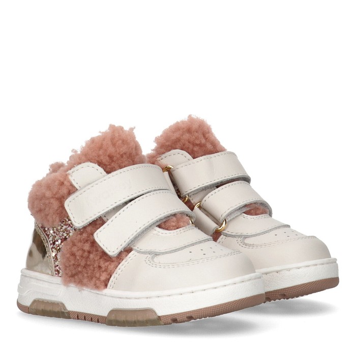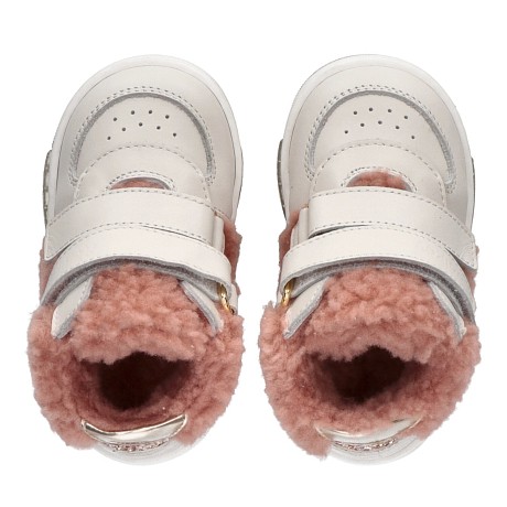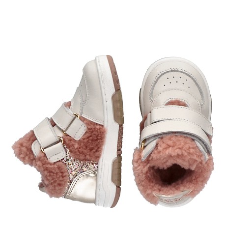 Высокие кроссовки Walkey – идеальный выбор для девочек! Изготовленные из натурального меха и кожи, они идеально подойдут для прохладной погоды. Молочные цвета, натуральный мех и кожа создают стильный и теплый образ. На фотографиях видна удобная посадка с двумя липучками для надежной фиксации и термопластичная резина для устойчивости. Качество от итальянского бренда и внимание к деталям делают эти кроссовки отличным выбором для вашего ребенка!