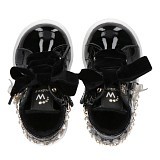 - 🎀 Дизайн: черная кожа, бусины, банты, белая подошва