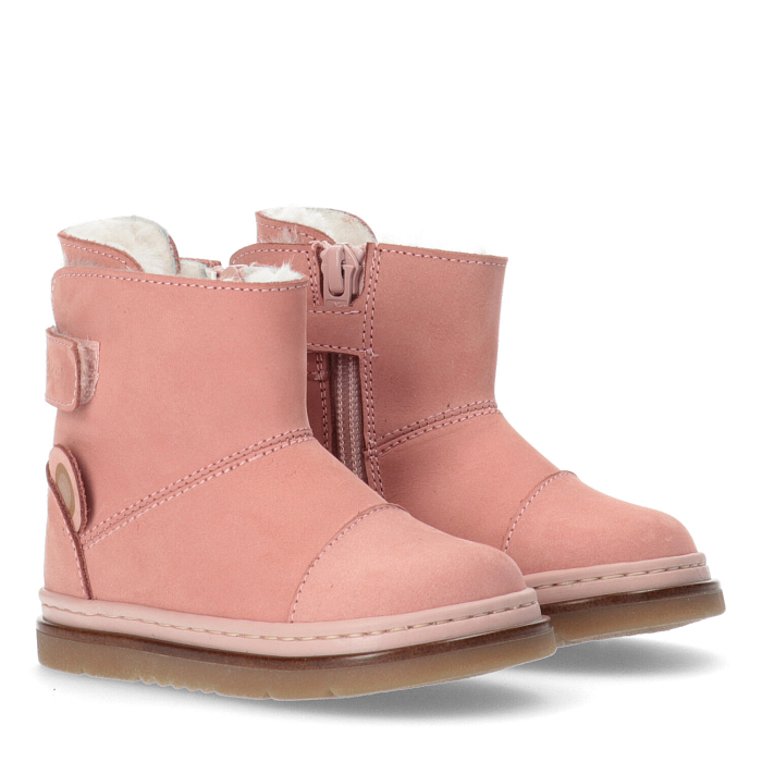 Розовые п/сапоги для девочки с натуральным мехом и резиной термопластичной