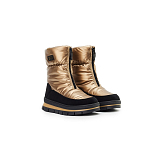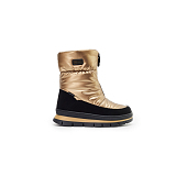 Эти стильные сапожки JOG DOG станут главным украшением зимнего гардероба вашей принцессы! Верх выполнен из блестящего золотистого текстиля, а черный искусственный нубук на мыске и пятке добавляет прочности. Внутри — натуральная шерсть, которая согреет ножки даже в самые суровые морозы. Массивная подошва обеспечивает отличное сцепление со снегом и льдом, а боковая молния позволяет легко надевать обувь.