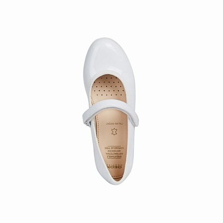 Белые туфли Geox – идеальный выбор для девочек! Изготовленные из кожи замши, текстиля и искусственного материала, они обеспечивают комфорт и стиль. Туфли с эластичной лентой на ремешке и удобной подошвой идеально подойдут для маленьких модниц. На фотографии видна аккуратная белая кожа замши, мягкая подкладка и эластичная лента на ремешке. Качество от бренда из Камбоджи делает эти туфли отличным выбором для вашего ребенка!