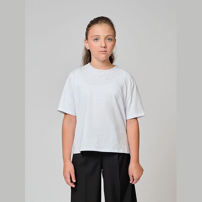 Белая трикотажная школьная блузка Андерсен для девочек 6-14 лет