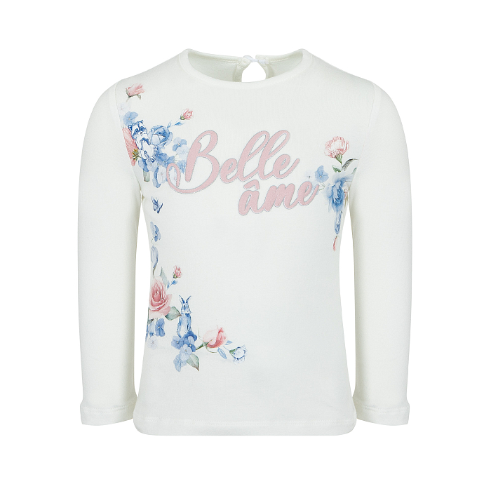 Блузка трикотажная для девочек с принтом цветов и надписью Belle âme