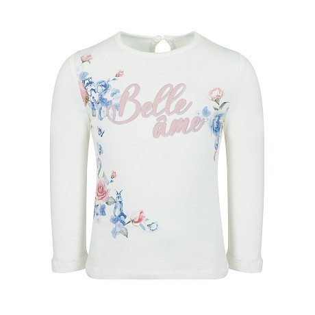 Трикотажная блузка Lapin House – это идеальный выбор для девочек! Изготовленная из 92% хлопка и 8% эластана, она украшена очаровательными цветами и надписью Belle âme. Белый фон с розовыми и голубыми цветами, а также изображениями животных создают нежное и в то же время яркое настроение. На фотографиях видна аккуратная белая окантовка по краю и мягкая текстура ткани. Качество от бренда из Греции и внимание к деталям делают эту блузку отличным выбором для вашего ребенка!