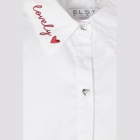 Блуза Elsy – это идеальный выбор для маленьких модниц! Изготовленная из 77% хлопка, 20% полиамида и 3% эластана, она идеально подходит для теплой погоды. Блуза с рукавами 3/4 и вышивкой на воротнике создает нежный и элегантный образ. На фотографии видна вышивка в виде слова "lovely" и красного сердечка на воротнике. Блуза с удобной посадкой и эластичной резинкой на манжетах подойдет для девочек от 8 до 12 лет.