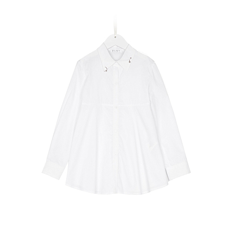 - 🎨 Дизайн: белый цвет, классический воротник, пуговицы