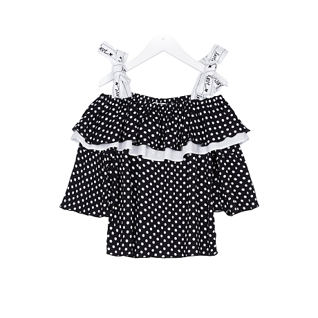 Блуза Elsy – это идеальный выбор для стильных девочек! Изготовлена из 100% вискозы и 72% хлопка, дополнена изысканным принтом в горошек. Блузка с эластичными бантами на плечах и слоеной юбкой создает неповторимый образ. На фотографиях видна аккуратная белая окантовка по краю и мягкая текстура ткани. Качество от итальянского бренда Elsy и внимание к деталям делают эту блузку отличным выбором для вашего ребенка!