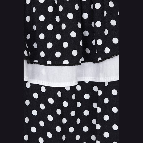 - 🎨 Дизайн: горошек, оборки, белые бантики на плечах