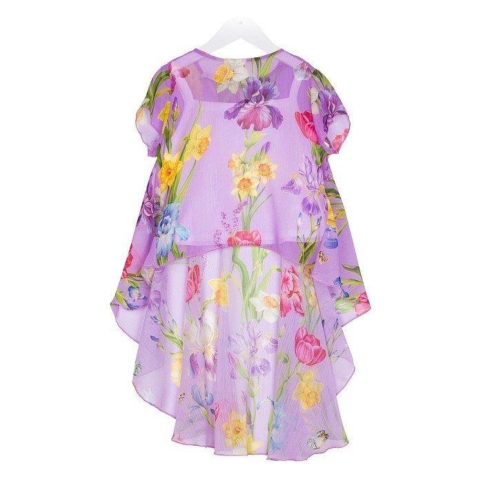 Блуза Elsy – это идеальный выбор для девочек! Изготовленная из 100% полиэстера и хлопка, она украшена ярким цветочным принтом с розовыми тюльпанами, желтыми нарциссами, фиолетовыми ирисами и бабочками на светло-фиолетовом фоне. Нежная ткань с яркими цветами создает легкое и веселое настроение. На фотографии видна аккуратная вышивка по краю и мягкая текстура ткани. Качество от бренда из Румынии и внимание к деталям делают эту блузу отличным выбором для вашего ребенка!